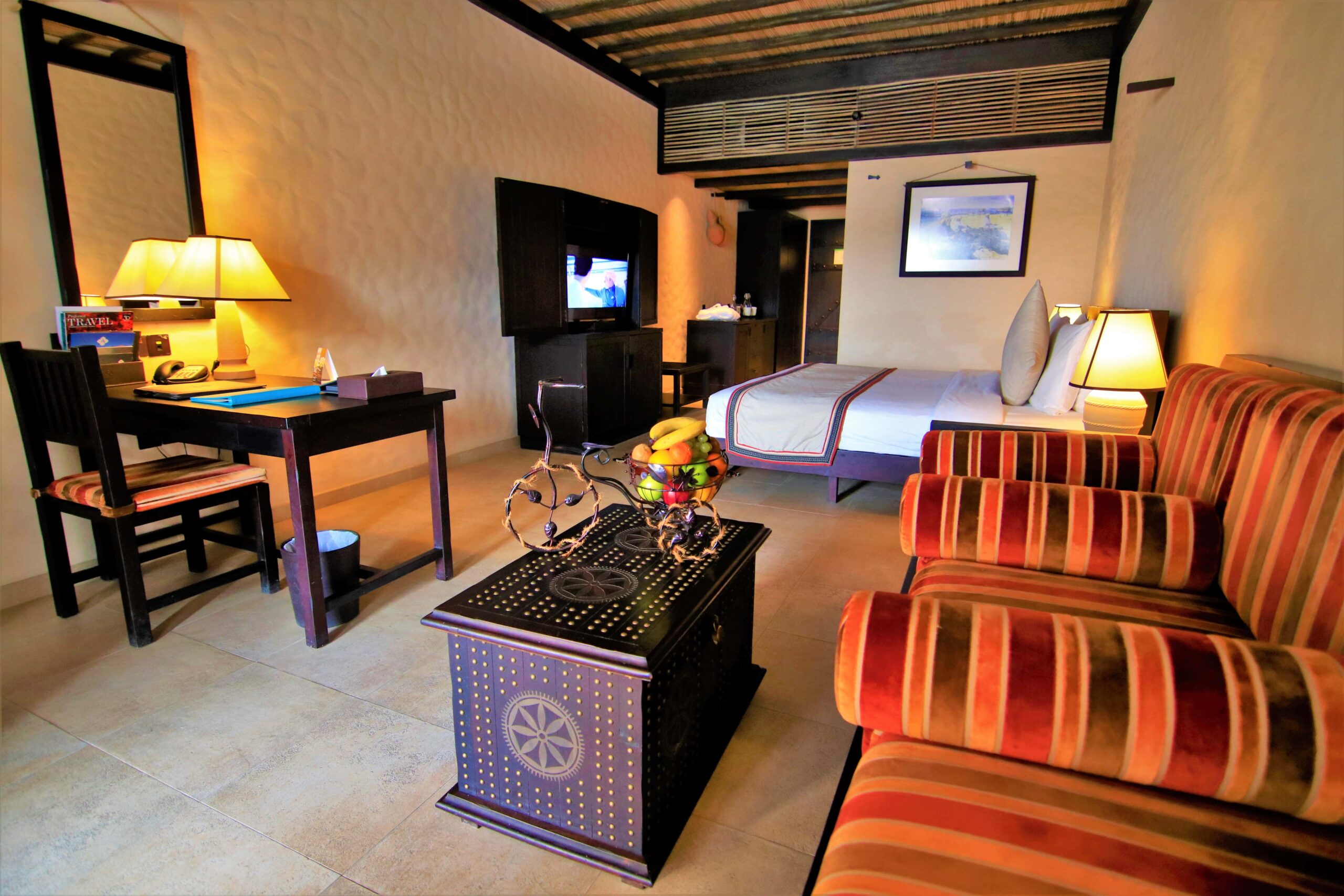 Grosszügige Zimmer mit zeitgenössischer Einrichtung und omanischen Elementen. Die Superior-Zimmer bieten Bergsicht und verfügen über Bad/WC, Klimaanlage, Bügeleisen/-brett, Safe, Sat.-TV, Telefon, kleinen Kühlschrank, Tee-/Kaffeekocher, WLAN. Die Duplex-Zimmer mit Balkonsind grösser und bieten einen Salon, Kitchenette und Berg oder Meersicht. Weitere Zimmer und Suiten auf Anfrage.