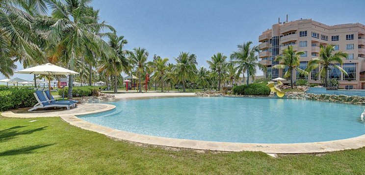 An der nördlichen Stadtgrenze, direkt am weissen Sandstrand mit türkisblauem Wasser und von grossen, tropischen Plamengärten umgeben. Ins Stadtzentrum sowie zum Flughafen Salalah sind es ca. 8 km.