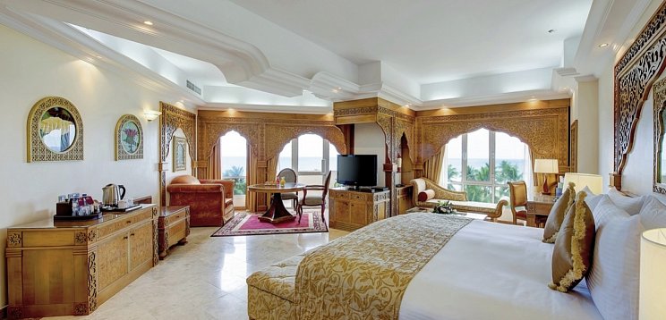 Die komfortabel eingerichteten Standard-Zimmer (ca. 35 m2) verfügen über Bad oder Dusche, WC, Föhn, Bademantel; Telefon, Sat.-TV, WLAN, Minibar, Safe, Klimaanlage; teilweise mit Balkon oder Terrasse, mit Gartensicht. Auch mit Meersicht buchbar. Die Junior Suiten (ca. 50 m2) sind im arabischen Stil eingerichtet, grösser, mit Essecke und verfügen über dieselbe Grundausstattung wie die Doppelzimmer; Balkon mit Meersicht. Weitere Suiten und Villen vorhanden.