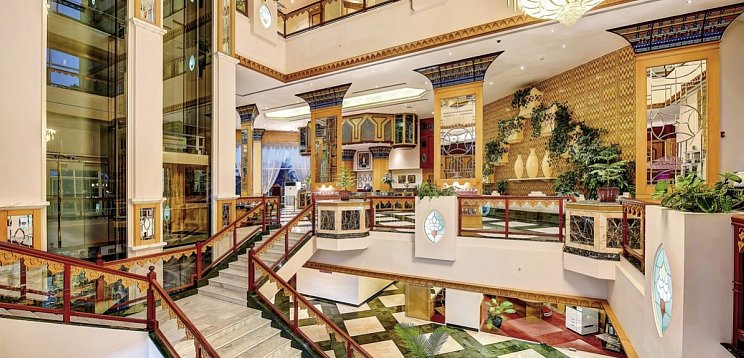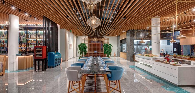 Elegante Empfangshalle mit Réception, WLAN (gratis), Geldautomat, Souvenirgeschäft, Lobbylounge und -bar/-pub. Hauptrestaurant mit internationalem Buffet und à la carte, Lounge, Strandrestaurant. Grosszügige Gartenanlage mit 3 miteinander verbundenen Pools.