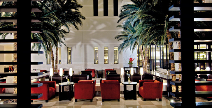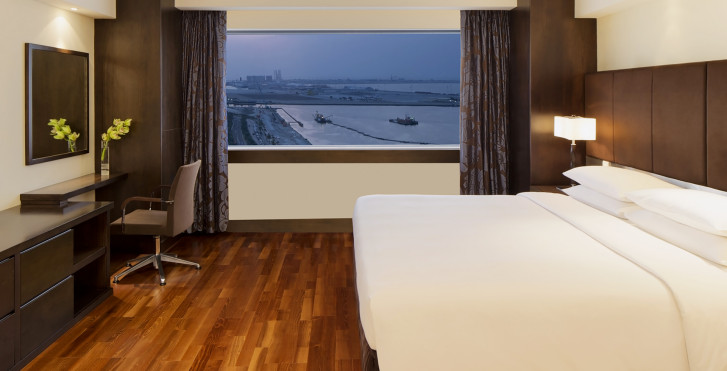 Die in Naturtönen gehaltenen Doppelzimmer (ca. 35 m2) verfügen über Dusche, WC, Föhn, Bademantel, Hausschuhe; Telefon, Sat.-TV, WLAN (gratis), Tee-/Kaffeekocher, Minibar, Mietsafe, Klimaanlage. Sicht auf die Stadt oder mit Meerblick. Die Doppelzimmer Regency Club (ca. 35 m2) verfügen über dieselbe Grundausstattung wie die Doppelzimmer mit Meersicht. Die Gäste dieser Zimmer profitieren zudem von exklusiven Annehmlichkeiten, wie dem Zutritt zur exklusiven Regency Lounge. Die Regency Suiten (ca. 68 m2) bieten zusätzlich ein separates Wohnzimmer. Die Regency Executive Suiten (ca. 102 m2) verfügen zusätzlich über einen separaten Wohnbereich mit Esstisch und Kitchenette. Die Emiri Suiten (ca. 190 m2) sind auf zwei Etagen errichtet und verfügen über 2 Schlafzimmer und 2 Badezimmer, Wohnzimmer, Esszimmer, Kitchenette und Sicht auf den Golf. Die Royal Suiten (ca. 240 m2) verfügen über die gleiche Ausstattung wie die Emiri Suiten und bieten zusätzlich eine voll ausgestattete Küche.